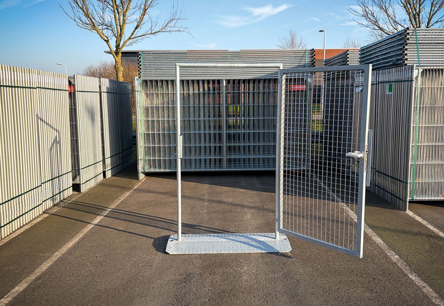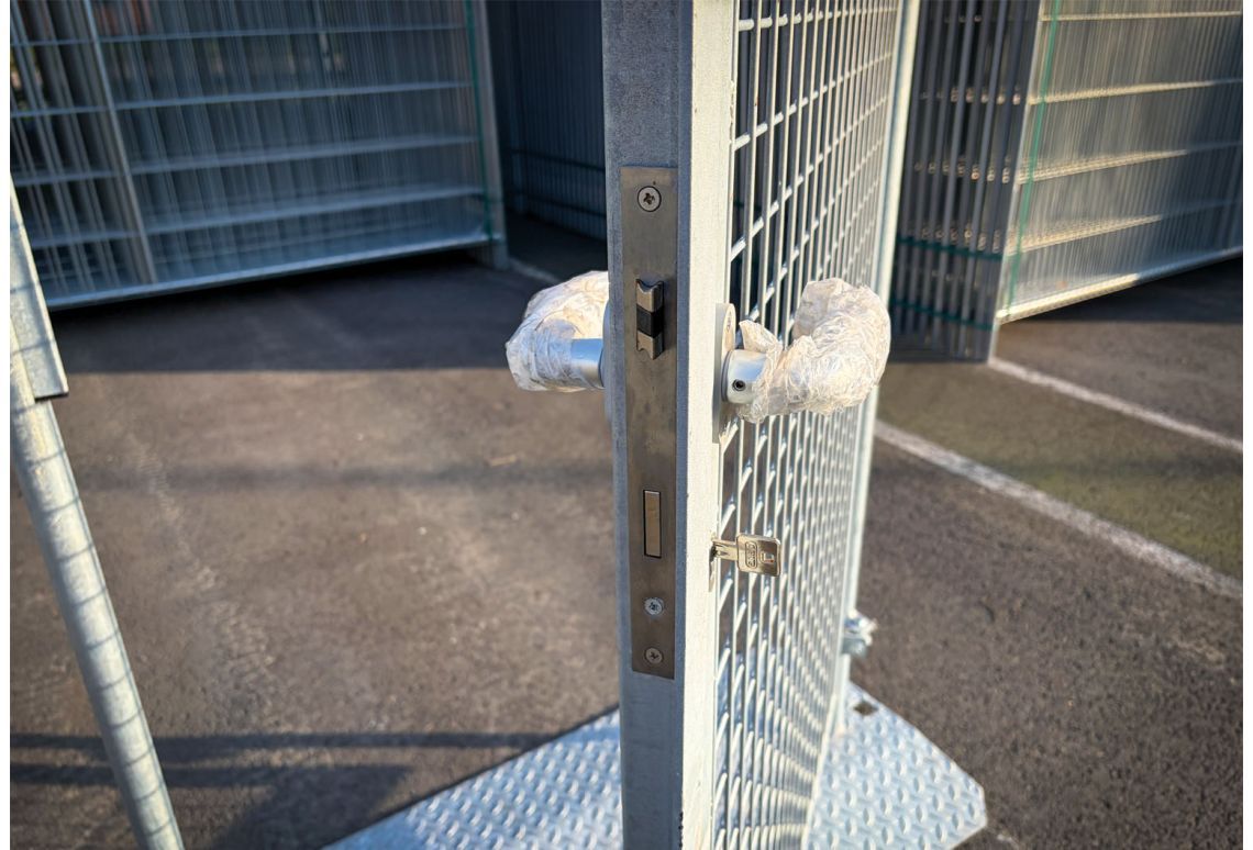 De bouwhek poort biedt een veilige en handige doorgang in tijdelijk hekwerk. Deze poort is speciaal ontworpen om eenvoudig toegang te verschaffen tot een afgesloten bouw- of evenemententerrein. Dankzij de stevige constructie en gebruiksvriendelijke werking is deze poort ideaal voor medewerkers en bezoekers.