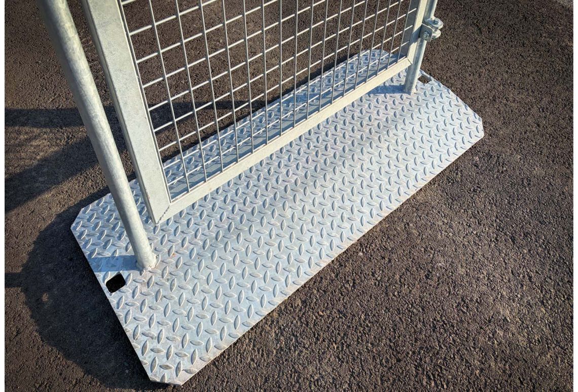 Aan de onderzijde van de bouwhek poort zit een handige voetplaat met meerdere opstaande pijpjes. Hierop kun je je tijdelijk hekwerk eenvoudig aansluiten. De voetplaat is gemaakt van sterk staal en is thermisch verzinkt. Hiermee ben je verzekerd van een veilige en duurzame oplossing.