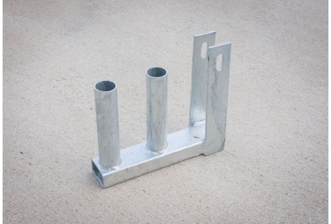 Praktische oplossing om een toegangspoort in je tijdelijk hekwerk te creëren. Het scharnier moet aan de bovenzijde in de aangrenzende buizen van het bouwhek worden geplaatst. Op deze manier kan het bouwhek vrij bewegen.