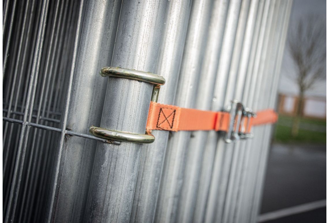 De bunkerset is geschikt voor 28 bouwhekken en is vervaardigd van verzinkt staal. Er zitten twee spanbanden bij zodat je het geheel goed kunt fixeren.