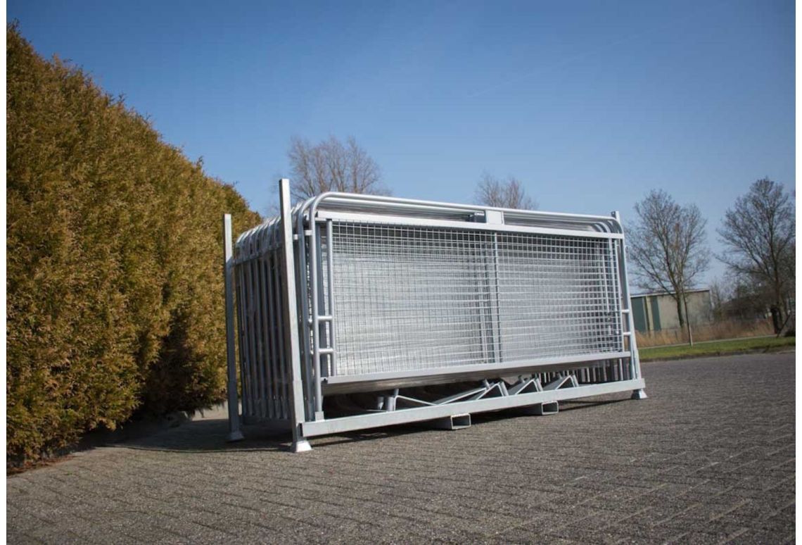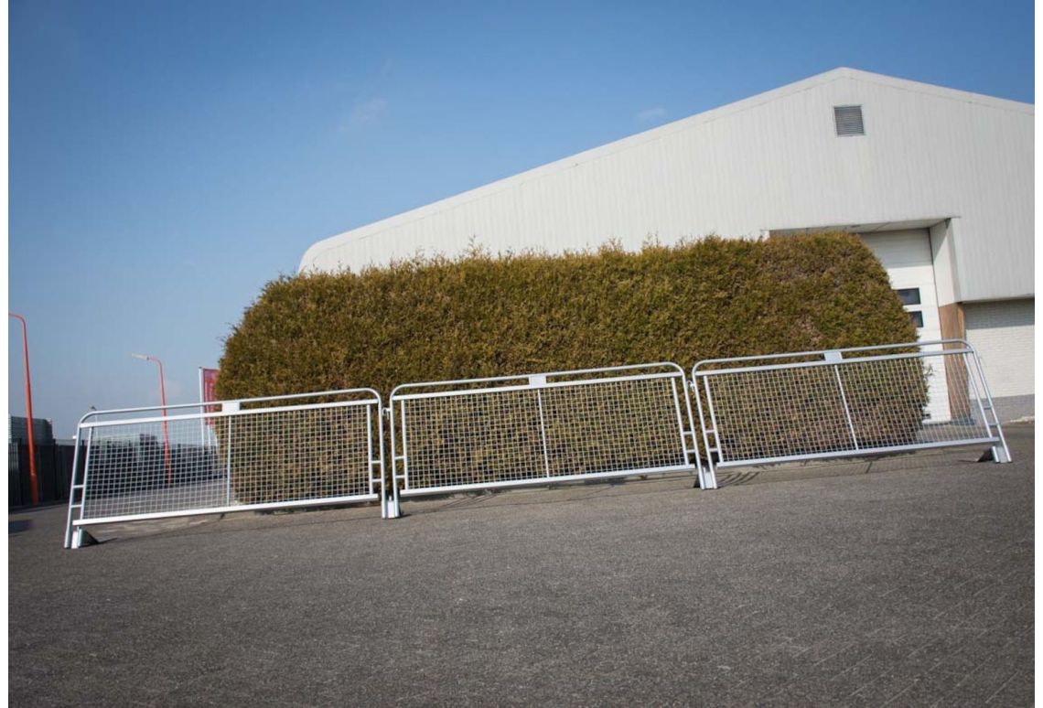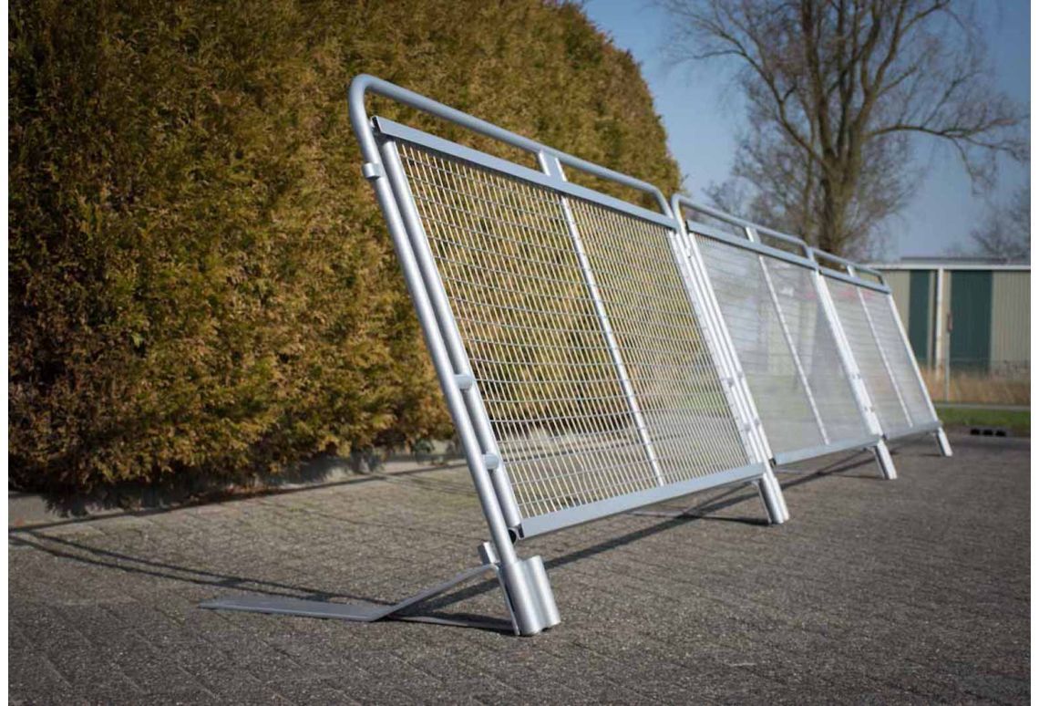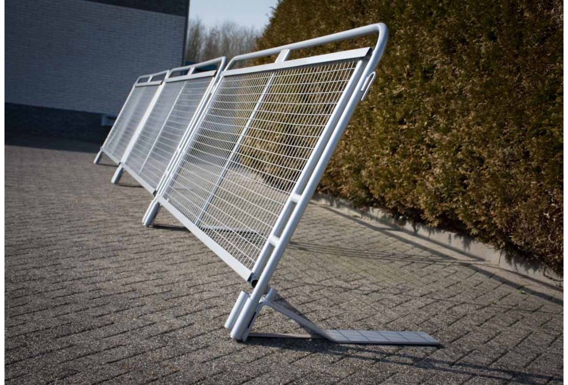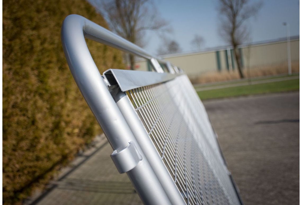 De barrier is verzinkt en voorzien van een coating. Met het haak-en-oog systeem kunnen meerdere hekken eenvoudig aan elkaar worden bevestigd.