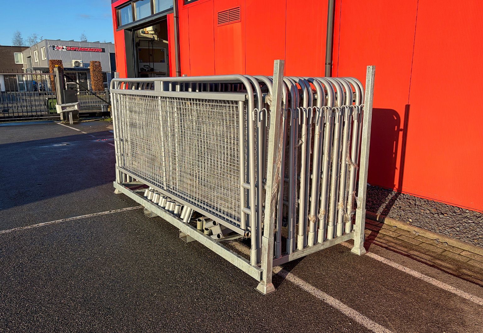 Langere levensduur: om schade aan dranghekken tijdens opslag en transport te voorkomen, kun je ze het beste op een transportbok plaatsen. Dit verlengt de levensduur van de hekken, bespaart ruimte in je opslagloods of vrachtwagen en draagt bij aan een veilige werkomgeving.