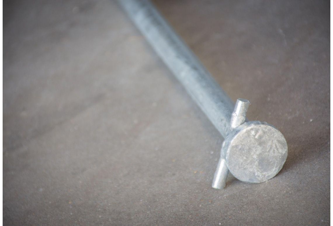 De grondpin is zeer geschikt voor intensief gebruik of voor verharde ondergronden. De extra dikke kop maakt het makkelijk om de grondpin de grond in te slaan en er weer uit te trekken.