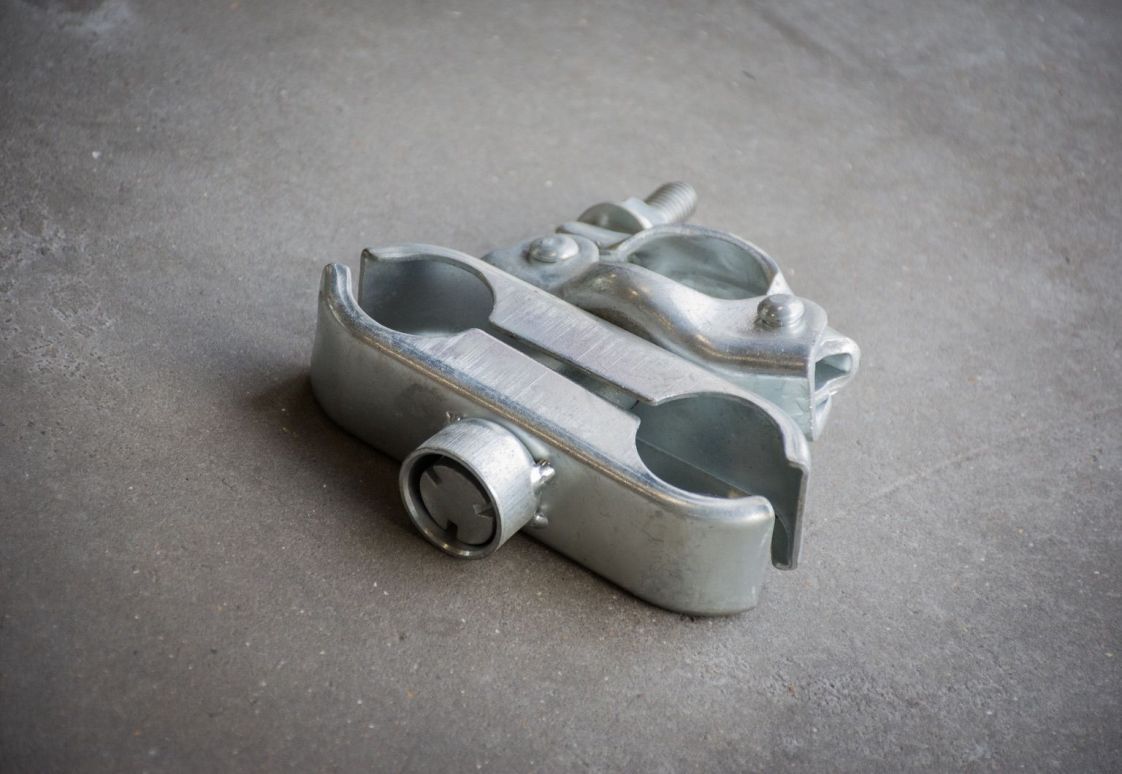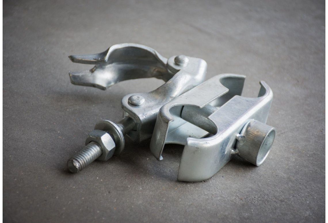 De voorste klem is een vaste opstelling, hiermee zijn bouwhekken te koppelen. Met de verstelbare achterste klem zijn meerdere type buizen te verbinden. Dit deel is verstelbaar (diameter zelf bepalen) en draaibaar.