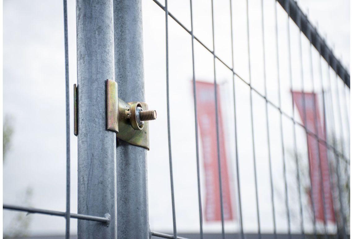 Met een beveiligde bouwhekklem kun je bouwhekken onderling verbinden. De beveiligde bouwhekklem is voorzien van rondingen die precies om het hekwerk passen en is uitermate geschikt tegen inbraak.