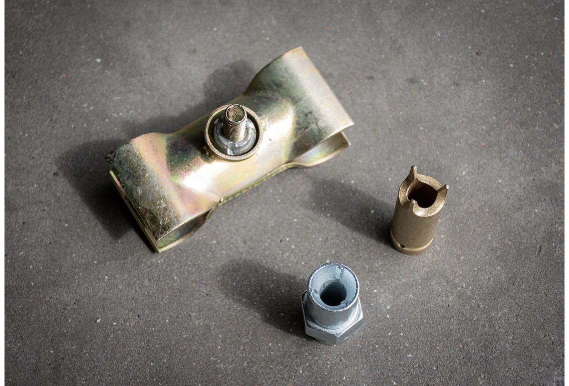 De moer is voorzien van een drie-tandsysteem, die alleen te monteren is met de speciale gripsleutel.