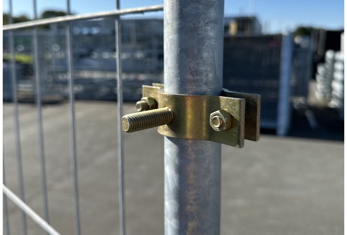 De diameter van de bouwhekklem is 42 mm en past precies om de staander van een standaard type bouwhek.