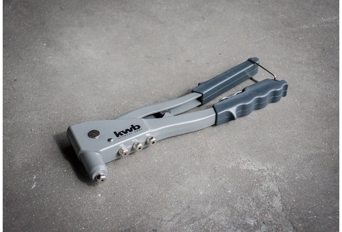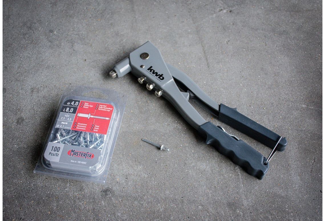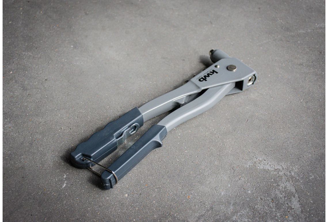 Gebruik deze handige popnageltang om bordjes, zoals Logo bordje | 196 x 80 mm en Logo Bordje | 297 x 100 mm, vast te maken op de bouwhekken met popnagels