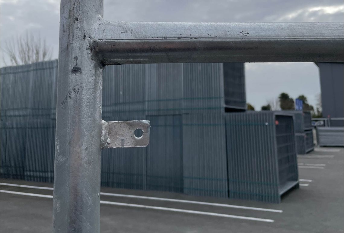 De staanders hebben een diameter van 40 mm en passen perfect in een standaard bouwhekvoet en bouwhekklem. Het frame is 200 cm hoog, gelijk aan de hoogte van standaard bouwhekken.
