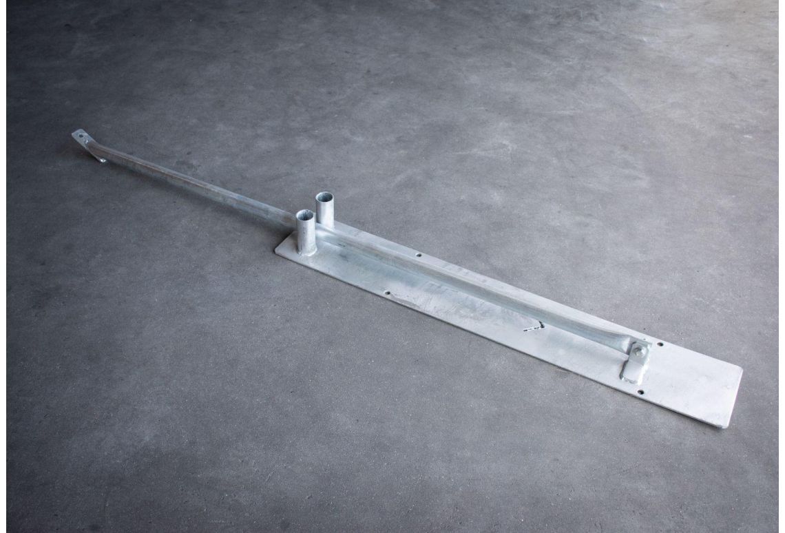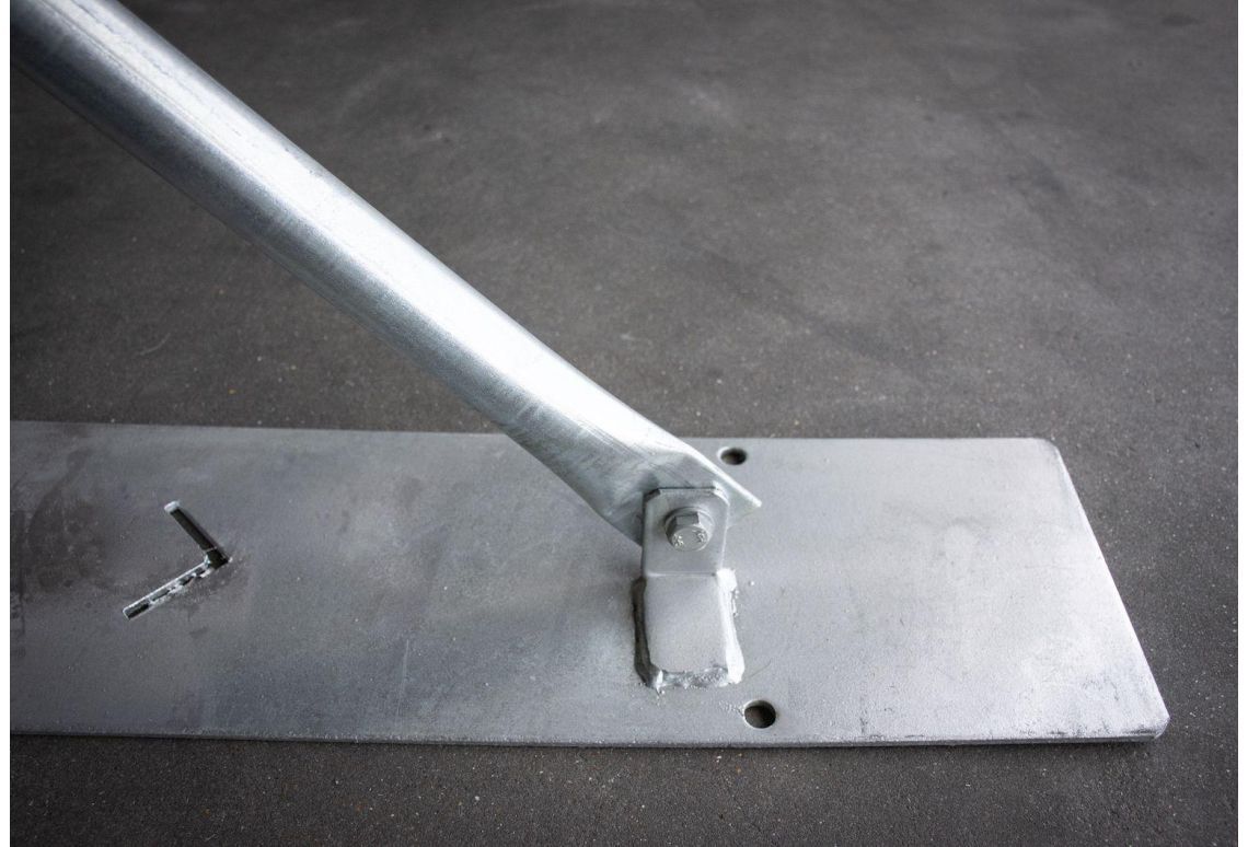 Met deze speciale schoor zijn bouwhekken op ieder soort ondergrond te schoren. Er is plaats voor meerdere bouwhek voeten waardoor er genoeg contragewicht is te creëren. Daarbij is het mogelijk om de schoor te verankeren met de ondergrond door middel van een grondpin of bout.