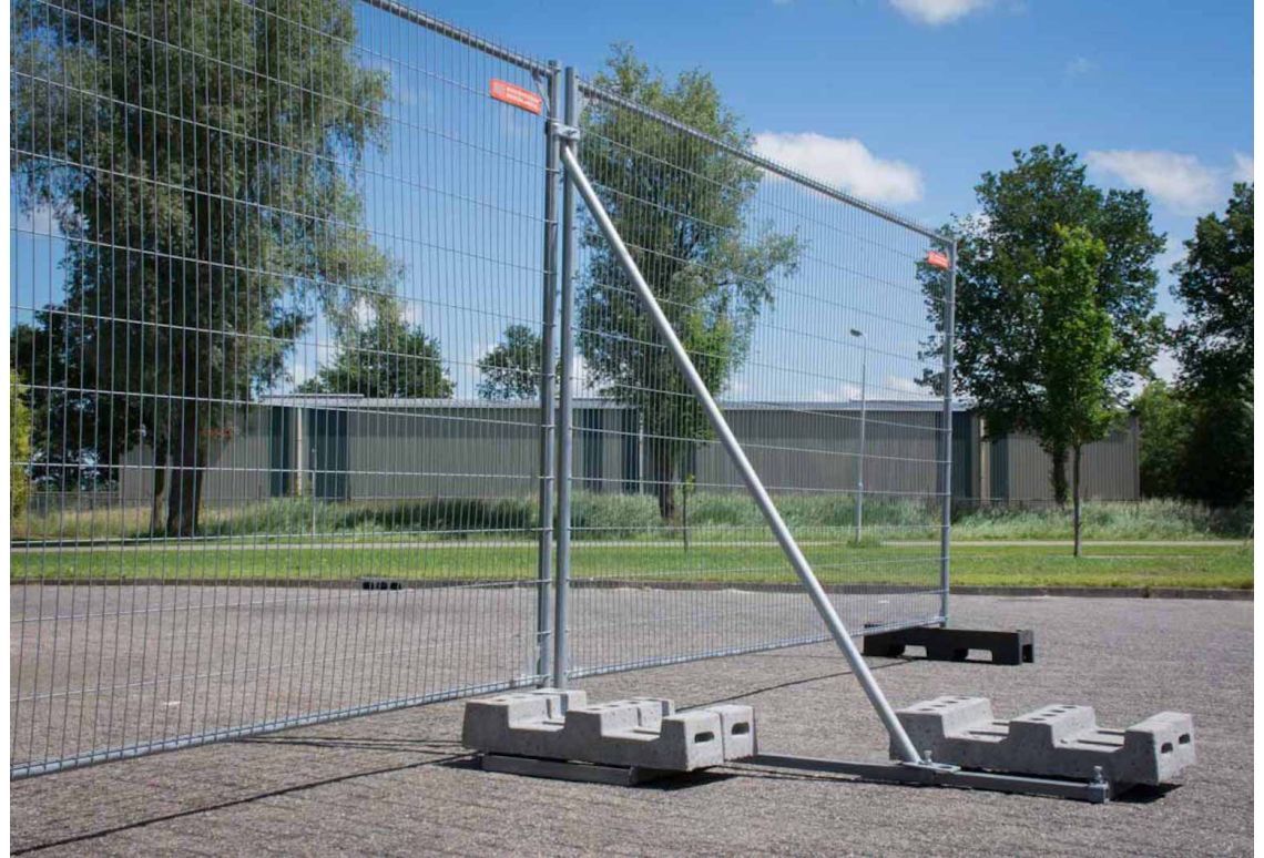 Maak gebruik van deze schoorset windbreker om je tijdelijk hekwerk stevig te monteren. Op locaties waar het niet mogelijk is om het hekwerk te verankeren in de grond is deze schoorset ideaal.