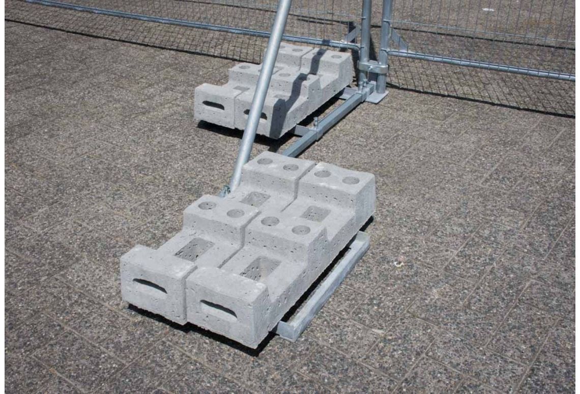Zware ballast, zoals bouwhekvoeten, kunnen op de daarvoor bestemde houders worden geplaatst. Door het tegengewicht zullen de bouwhekken niet snel omwaaien.