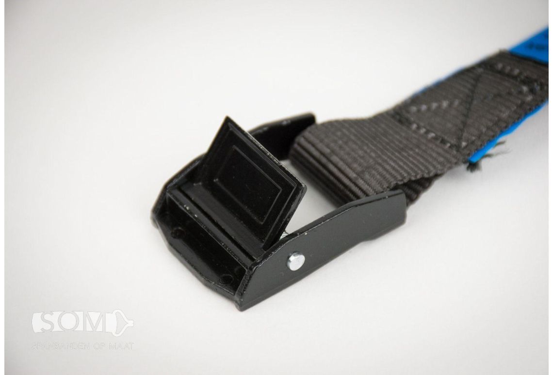 Let op: De spanband is bedoeld op bouwhekken te bundelen tijdens transport en opslag. De spanband is niet sterk genoeg om als hoofdzekering te dienen tijdens transport.