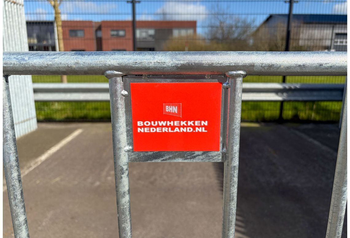 Zeker, dat is een slimme logistieke 'pro-tip'. Gebruik een klein hoekje van de sticker voor een jaartal of een kleurcode die correspondeert met je onderhoudsschema. Zo zie je bij het inladen direct welke hekken aan vervanging toe zijn of welke partij het laatst gecontroleerd is op verbogen spijlen.