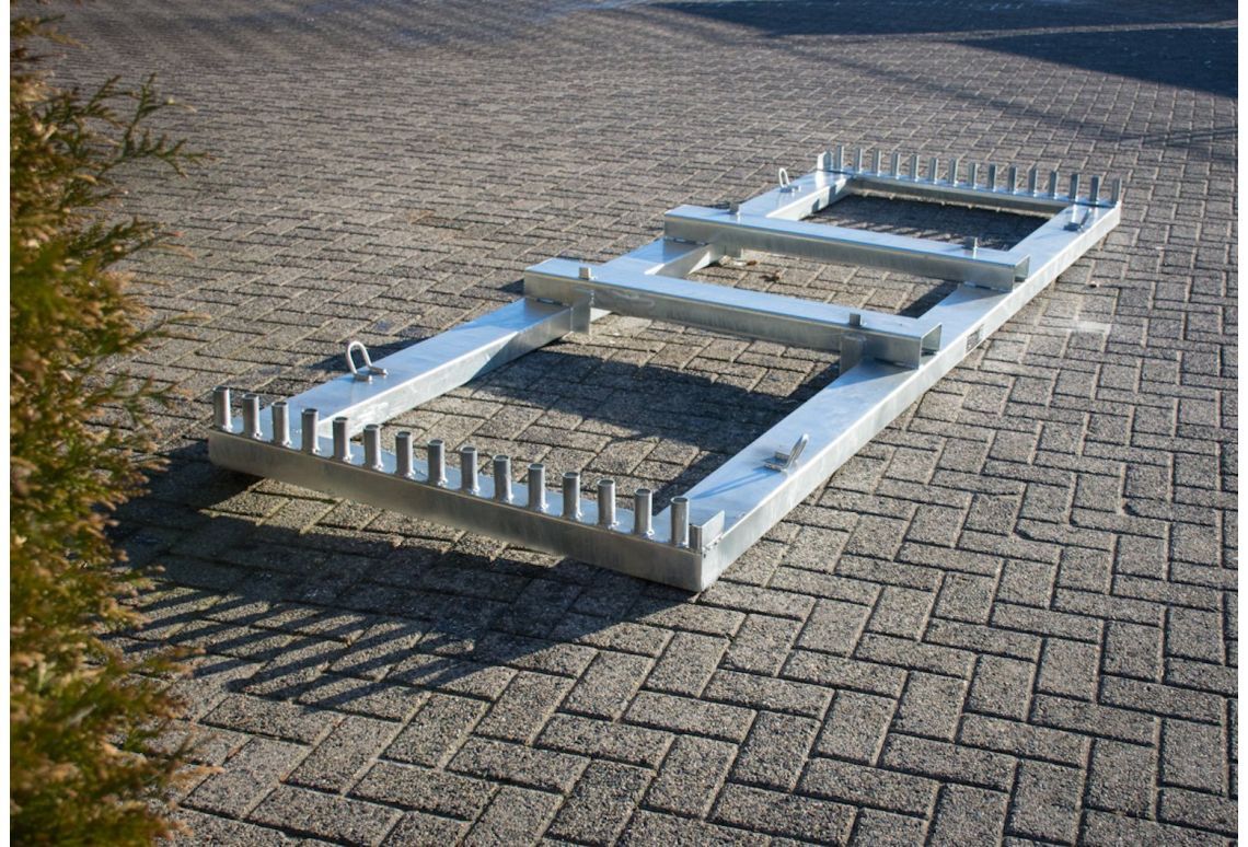 Met een heftruck of hijskraan is het transportpallet eenvoudig te verplaatsen.