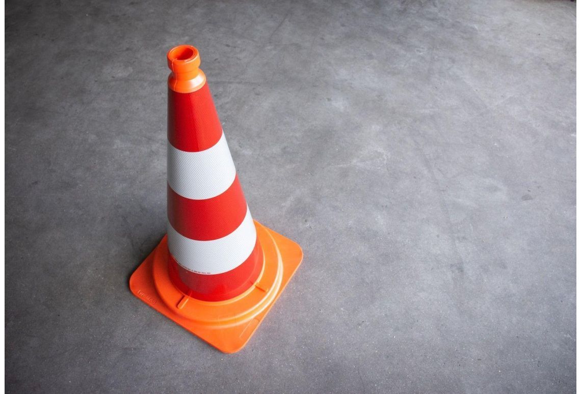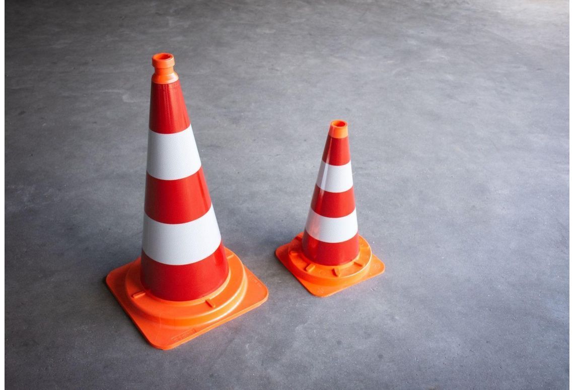 Door de reflecterende markering (klasse II/III) is de verkeerskegel goed zichtbaar in het donker.