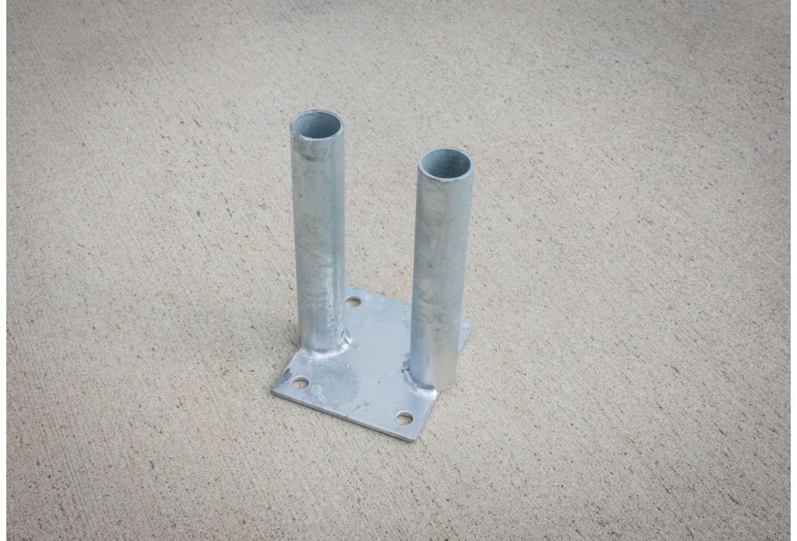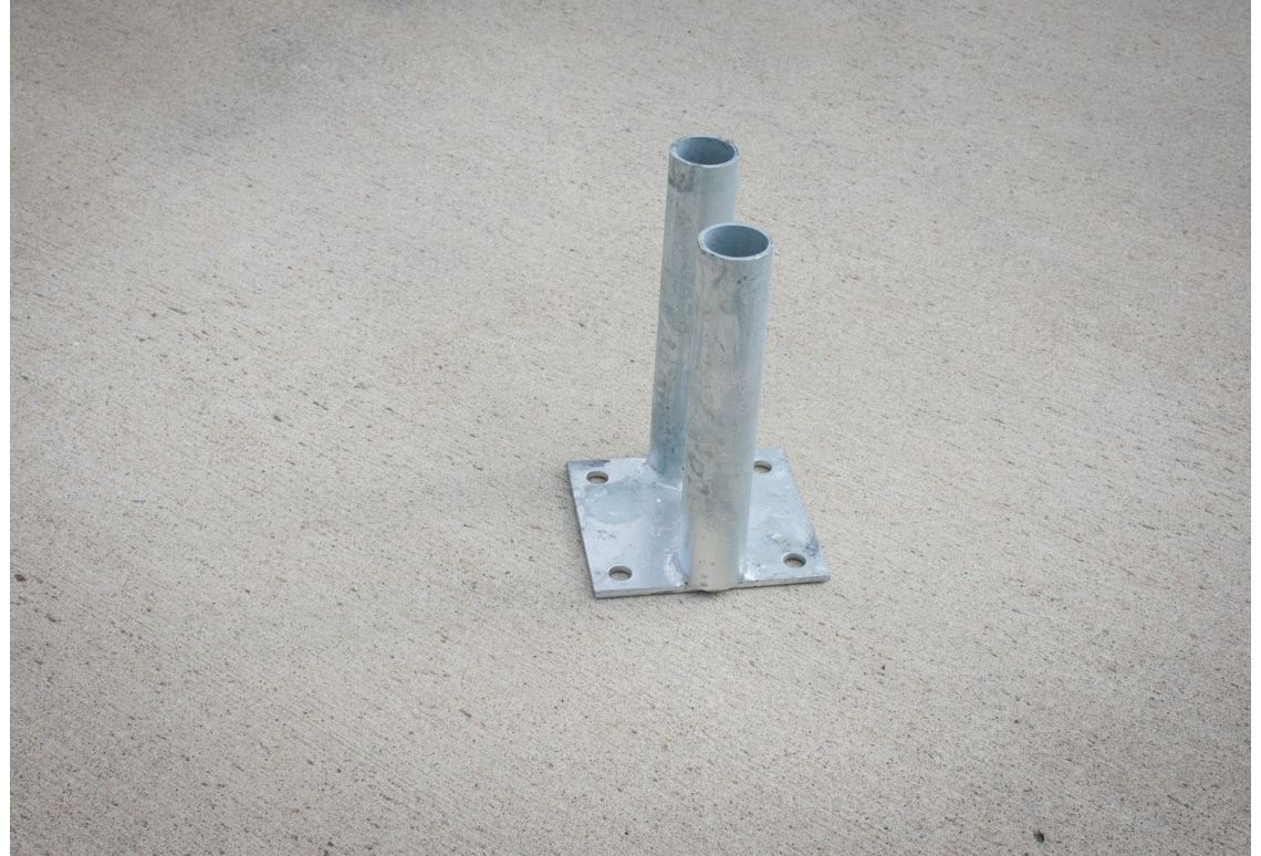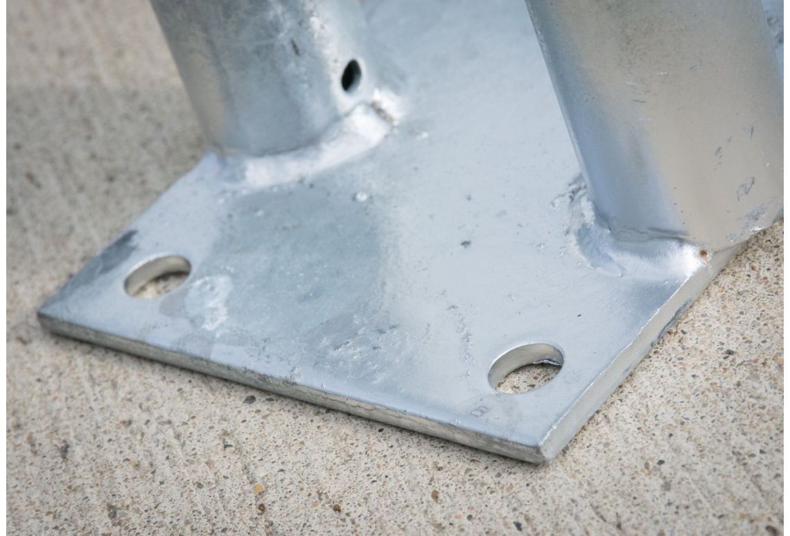 Deze voetplaat voor (semi-permanent) hekwerk is zeer functioneel. Door gebruik te maken van de vier gaten die in de plaat zitten, is het mogelijk de voetplaat door middel van Fischer FBN II bouten aan de grond te monteren.
